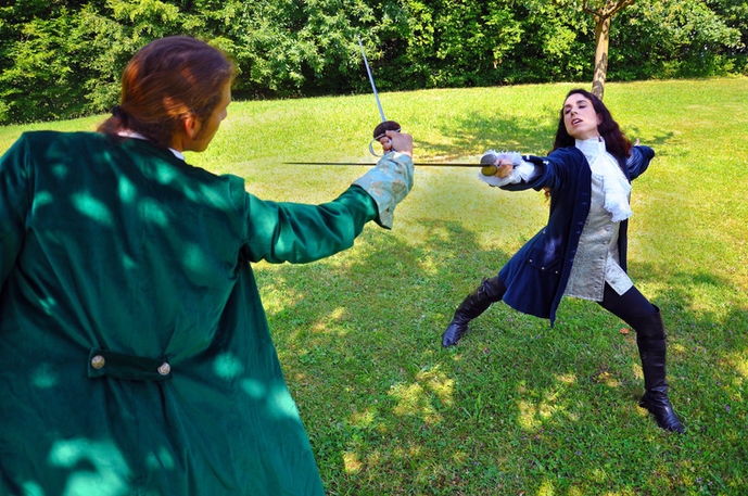 Le XVIIIème siècle porte avec lui le raffinement d'une escrime de pointe presque exclusivement. Elle se purifie, se simplifie d'actions inutiles ou trop risquées. Elle emprunte le chemin de l'efficacité simple et directe sans lui retirer une manière et un style élégants.